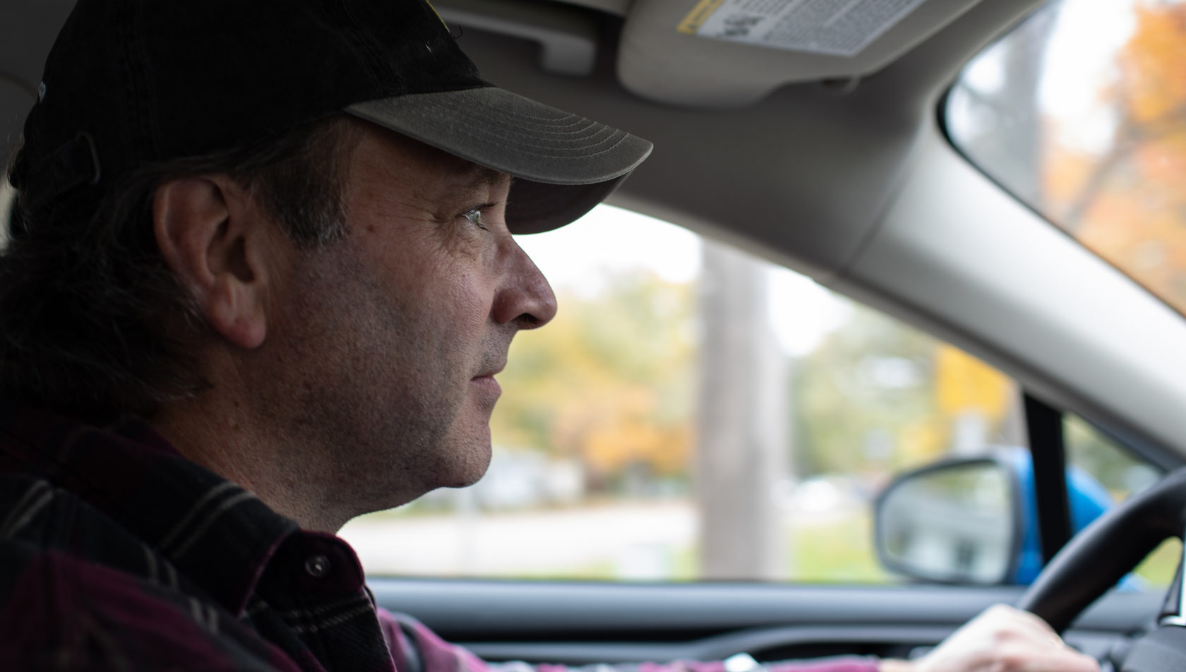 Broekema looks in the rearview mirror as he drives on the highway. The plan was to drive up in the morning, visit in the afternoon, then come back overnight.