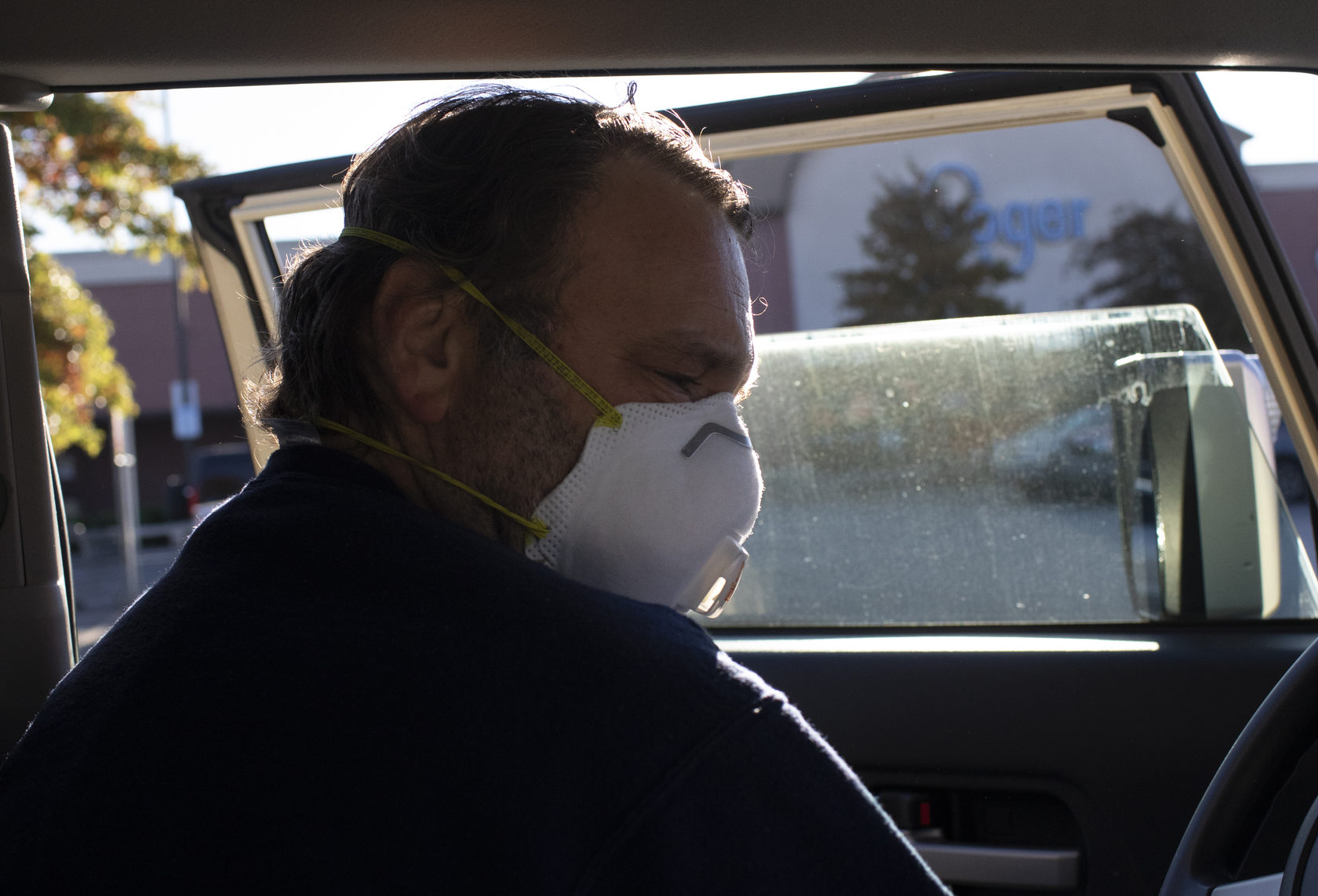 Broekema gets out of his car in the Kroger's parking lot early in the morning to get groceries.