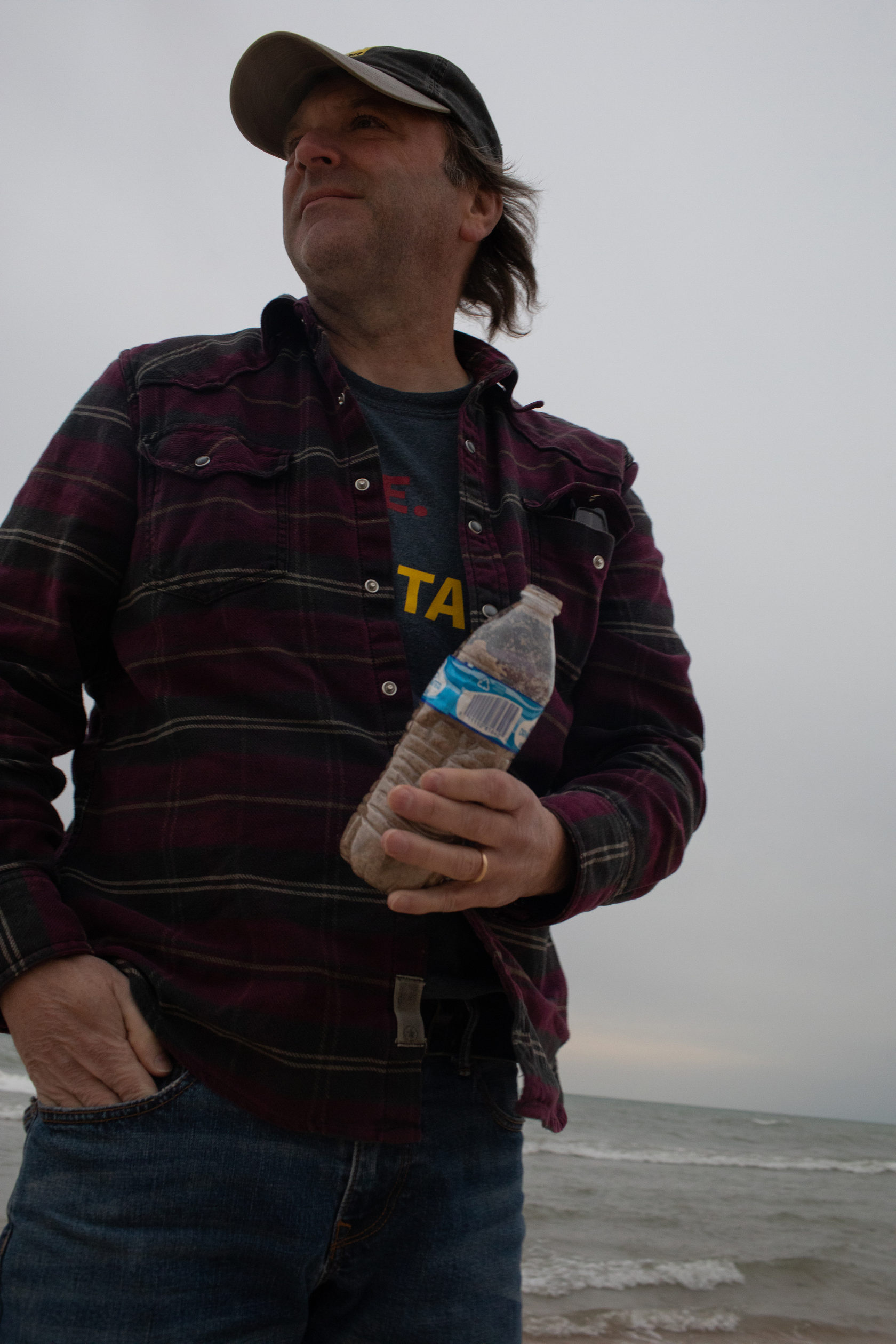 Broekema took a stop at North Beach in South Haven, Michigan on his way out of town. It's the beach he took his family to back when they lived in Kalamazoo. He collected a bottle of sand to bring back to his wife.